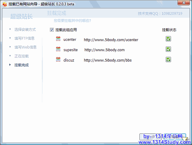 上图界面点击“完成”即可完成已有网站挂接操作了,然后在“我的网站”里面就可以看到新挂接进去的网站了: