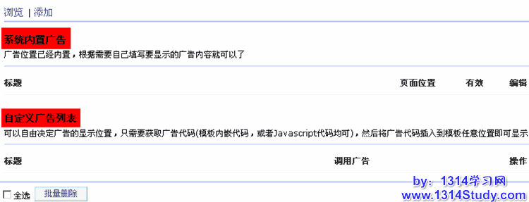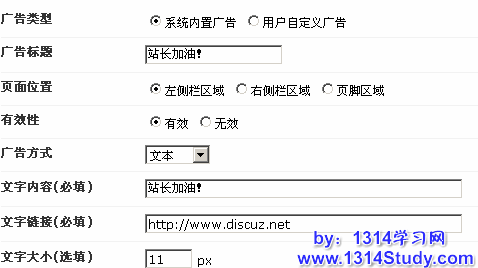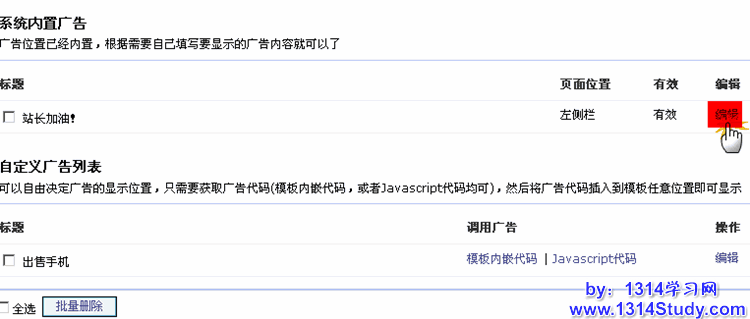 所在位置 => UCenter Home 管理后台 => 高级应用 => 广告设置