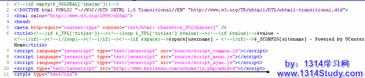 比如想在 UCHome 的顶部显示,那么就把这段代码插入到 \template\default\header.htm 文件里就可以了如下图所示的位置: