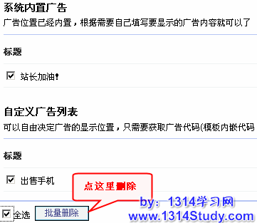 添加好的广告可以批量删除如下图所示: