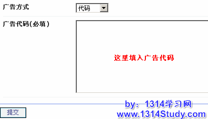 A、如果选择代码方式那么在下面填入广告的代码如下图所示: