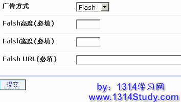 B、如果选择 flash 方式那么需要填入 Falsh 高度(必填)、Falsh 宽度(必填)和 Falsh URL(必填)如下图所示: