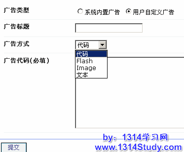 3、广告方式:分为代码方式、flash 方式、image 方式和文本方式