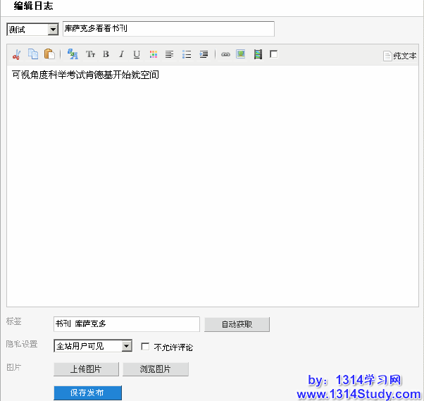 编辑后点击下面的保存发布,完成日志的编辑。
