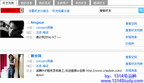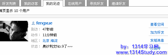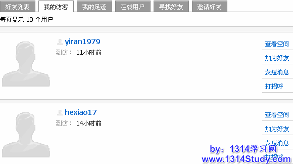 是指我都访问个哪些用户的个人空间在这里都有记录如下图所示: