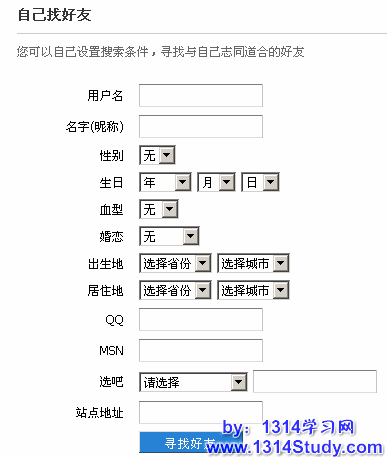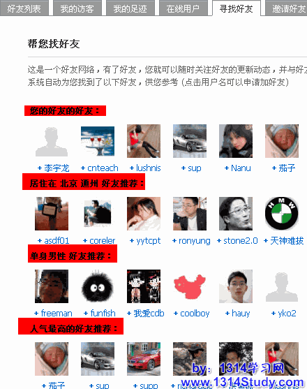 系统会根据自己的好友情况以及居住地址等条件自己列出一些好友,同时还可以根据自己的搜索条件精确的搜索好友如下图所示: