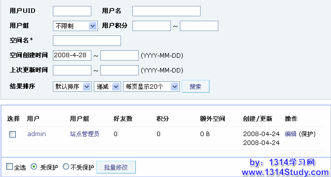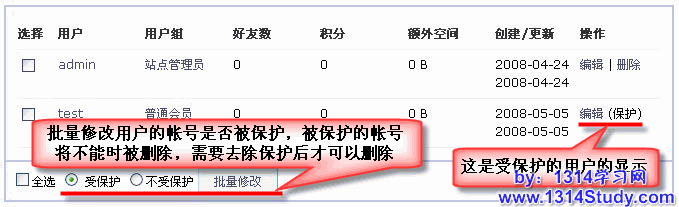 2、保护用户:设置被保护的用户将不能被删除,包含UCenter后台的删除用户的操作。