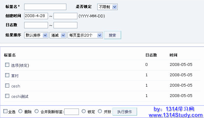 3、锁定:选择标签前的方框,再选择下“锁定”,点击“执行操作”即可;锁定的标签在标签后显示“(锁定)”标识;关闭的标签,前台点击访问,提示“标签已经被锁定”;