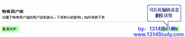 系统用户组默认自带一个名为“贵宾VIP”的组,站长可以根据自己的需求添加和编辑特殊用户组的权限,特殊用户组的添加和编辑方法类似于普通用户组的添加和编辑方法,这里将不再赘述。