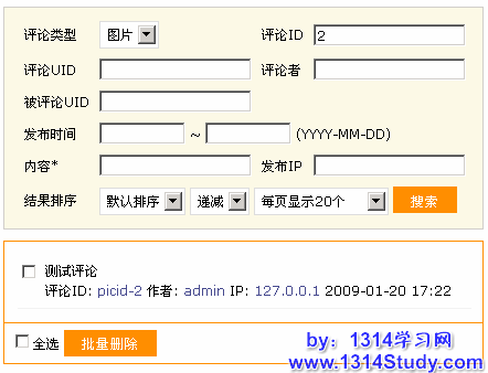 也可以点击评论管理进入,管理该图片的评论内容,如下图所示: