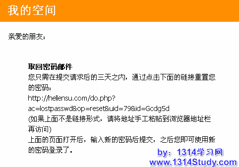 然后您就会收到一封修改密码的邮件。如下图所示: