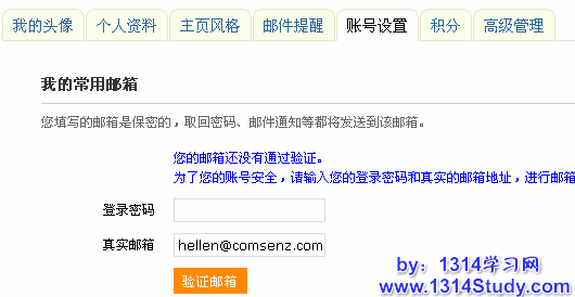 2、会员登录 UCenter Home 站点 => 设置 => 账号设置,如下图所示: