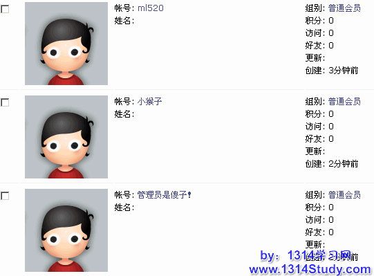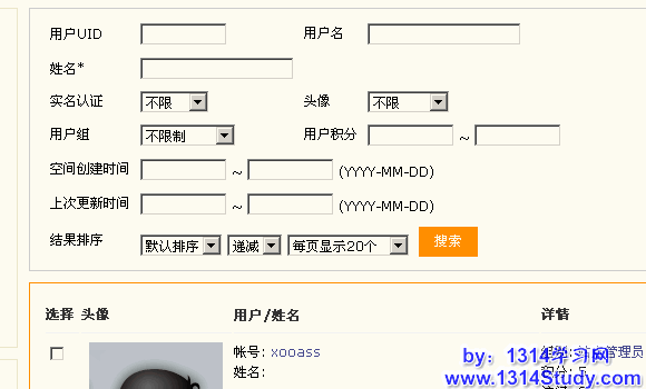 UCenter Home 能对用户进行有效的查看和管理。后台 => 批量管理 => 用户,如下图: