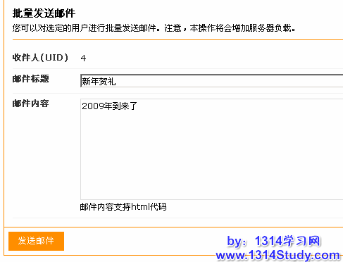 选择发送邮件通知,可以对选中的会员发送邮件通知。如下图: