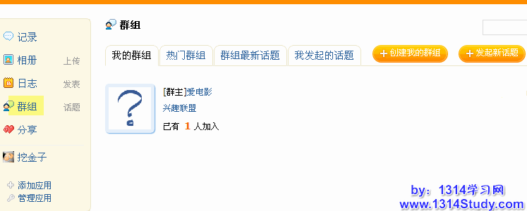 在 UCenter Home 前台,用户登录后点击“群组”按钮,进入群组管理页面,如下图所示: