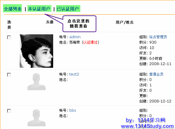 同时可以统一查看全部列表(包括已认证和未认证的所有会员)、未认证会员和已认证会员