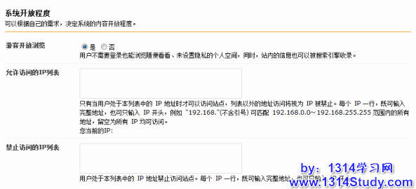可以根据自己的需求,决定系统的内容开放程度。如下图所示: