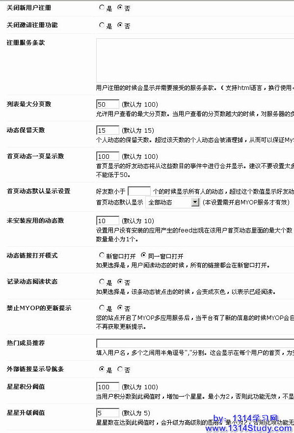 禁止 MYOP 的更新提示:开启 manyou 功能后,当站点有了新的信息的时候 MYOP 会自动提示给管理员。