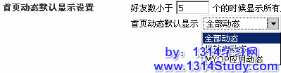 首页动态默认显示设置: 这里设置好友数小于多少个的时候显示所有人的动态,超过这个数值显示好友动态。