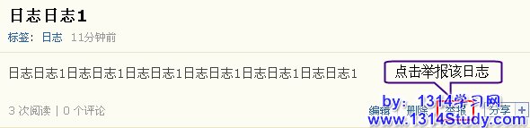 会员在浏览站点内容时,如果发现违规信息,可以向站长举报该信息,比如举报一片日志,如下图所示: