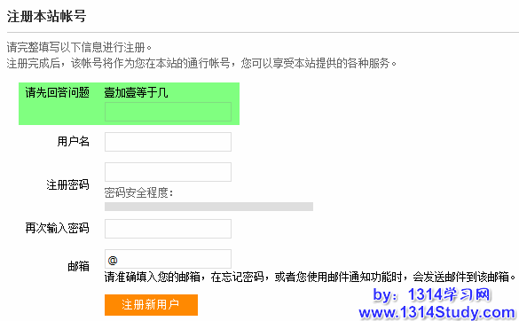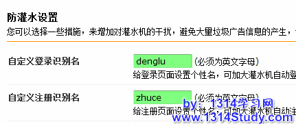 给注册页面设置个性名,可加大灌水机自动注册新用户的难度,如果有必须要,可以不定期更改一下。