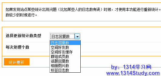 如果发现站点某些统计出现问题(比如某些人的日志数有误)时候,才使用本功能进行重新统计。