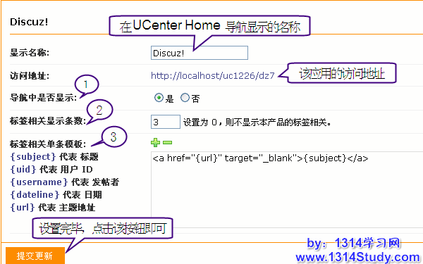 1、导航中是否显示:选择“是”,将在 UCenter Home 导航显示该应用的链接,方便用户访问该应用。