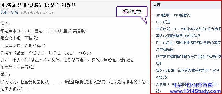 在 UCenter Home 打开一篇日志,即可看到标签相关,如下图所示: