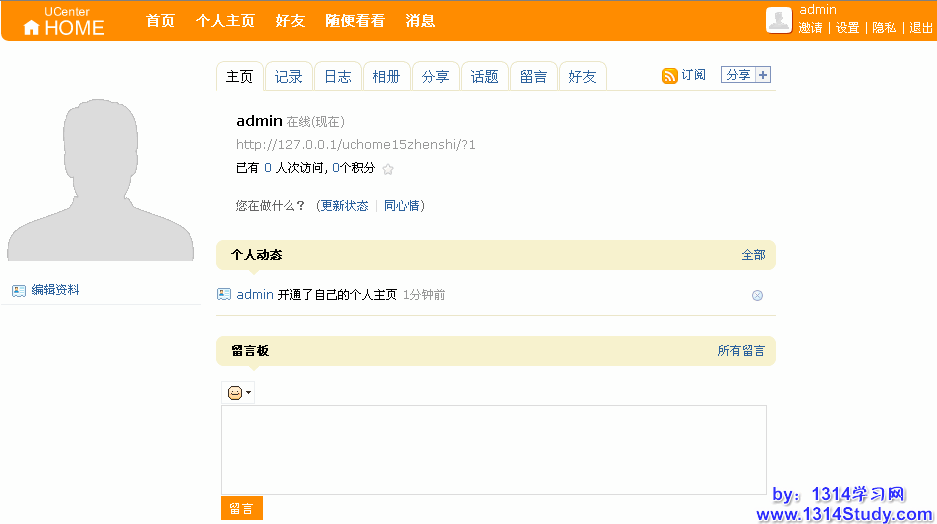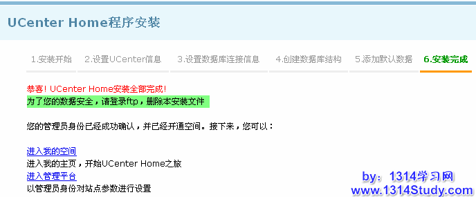 3、一切运行正常,删除 UCenter Home 目录下的 install 文件夹。