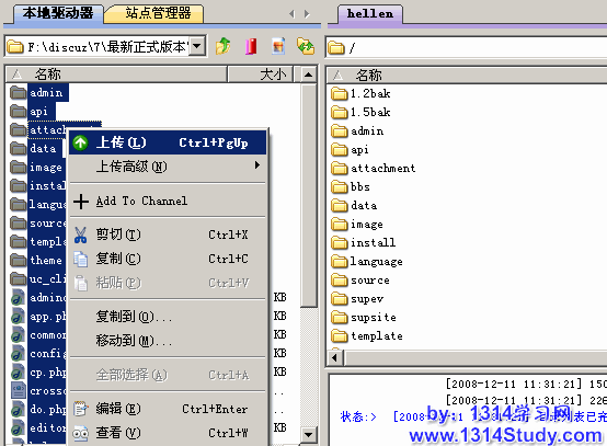 2、上传 upload 文件夹里的所有程序文件到服务器,如下图所示: