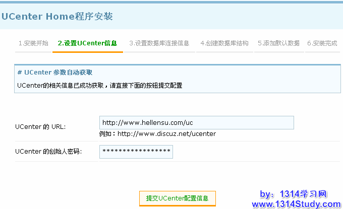 数据库密码:是指安装 UCenter Home 的数据库密码。