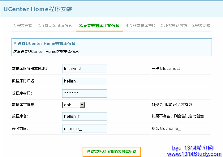 数据库名:是指安装 UCenter Home 的数据库名称。