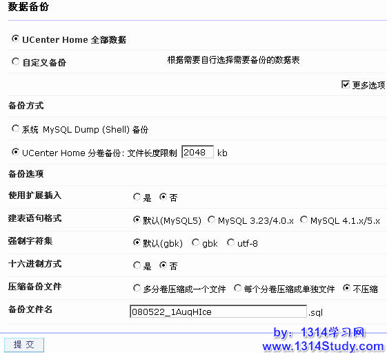 1、备份 UCenter Home 数据,请到 UCenter Home 的管理中心,点击“高级应用”里的“数据备份”,在此备份 UCenter Home 数据。如下图所示: