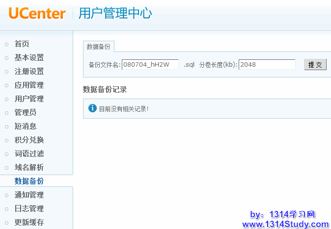 2、备份用户数据,到 UCenter 后台,点击“数据备份”,在此备份 UCenter 的数据。