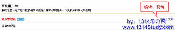 站长可以根据需求编辑这两个系统用户组的管理权限,下图中点击“编辑”即可: