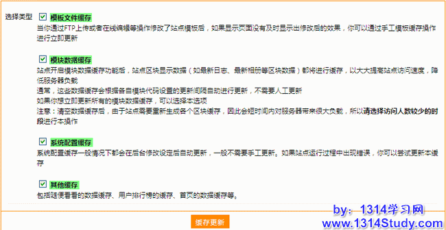 如果你想立即更新所有的模块数据缓存,可以选择本选项。