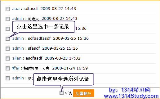 删除:选择一条或者多条记录前的方框,点击底部的批量删除即可进行删除。