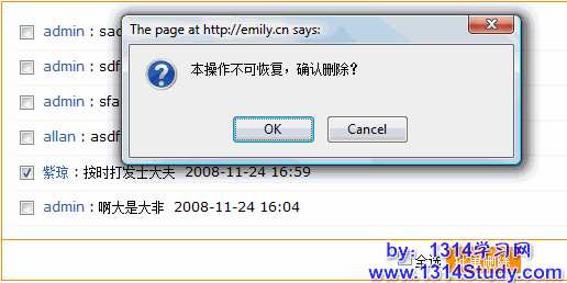 注意:删除的时候会有一个提示:“本操作不可恢复,确认删除?”选择“确定”则选中的日志被彻底删除,不可恢复。