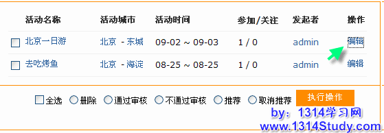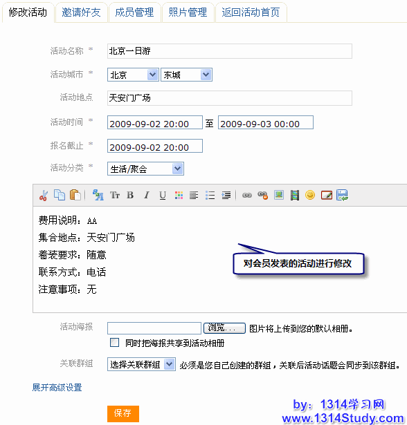 站长可以对活动进行编辑,即回到前台修改会员发表的活动内容。
