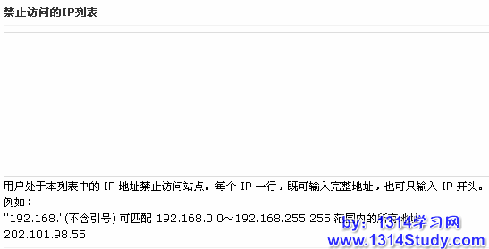 也有一种情况是,当某一个 IP 或者某一段 IP 乱注册发垃圾信息,垃圾广告的时候,站长需要设置禁止某个 IP 或者某个 IP 段访问论坛。