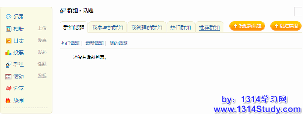 在前台群组页面,可以根据不同的兴趣创建群组、查看热门群组、查看群组最新话题、查看/发起我的话题。