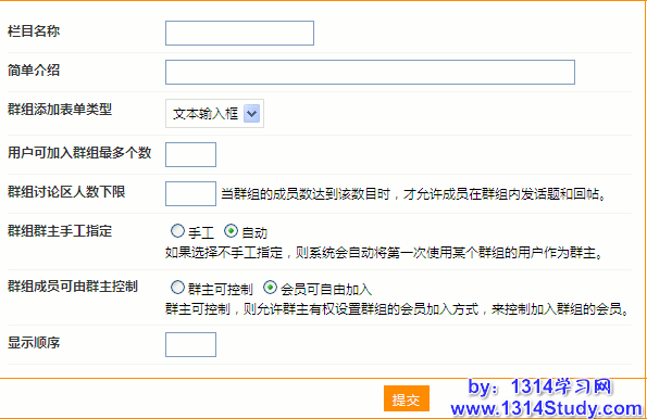 填写新群组栏目的信息,与上面编辑群组栏目类似。
