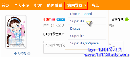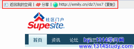 21、外部链接显示导航条:选择“是”则从 UCenter Home 导航过去的网站打开带有返回 UCenter Home 的导航,如下图所示: