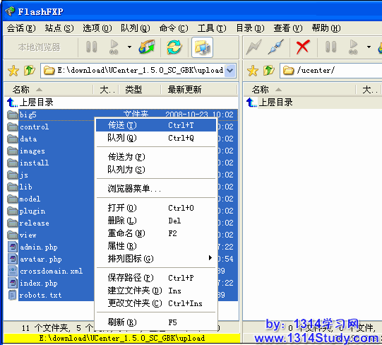 将其中 upload 目录下的所有文件使用 FTP 软件上传到空间,如下图所示: