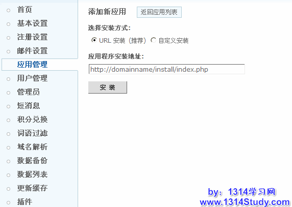 上图界面中选择“URL安装(推荐)”,填写好“应用的安装的URL”就可以开始安装各个应用了。
