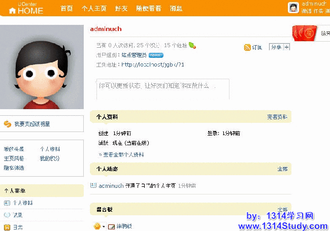 注意:***.com 是您的 UCenter Home 域名,见下图: