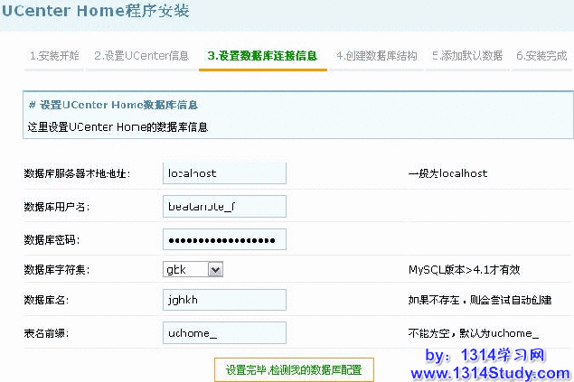数据库密码:是指安装 UCenter Home 的数据库密码。
