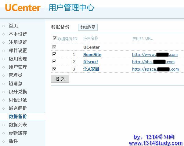 备份用户数据,到 UCenter 后台,点击“数据备份”,在此备份 UCenter 的数据。