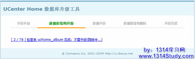 将 update 目录中的 update.php 上传到根目录,并在浏览器运行。即如果你的 UCenter Home 访问地址为 http://www.domain.com,则运行 http://www.domain.com/update.php,如下图所示: