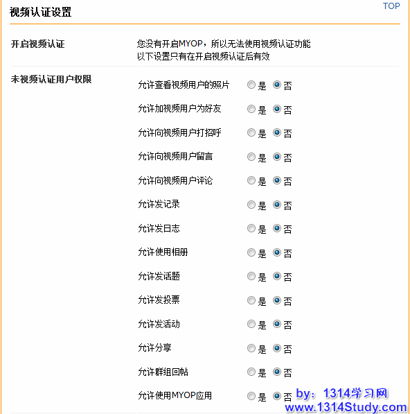 注意:使用视频认证功能必须开启 MYOP 。开启位置:UCenter Home 2.0 后台 => 基本设置 => MYOP应用